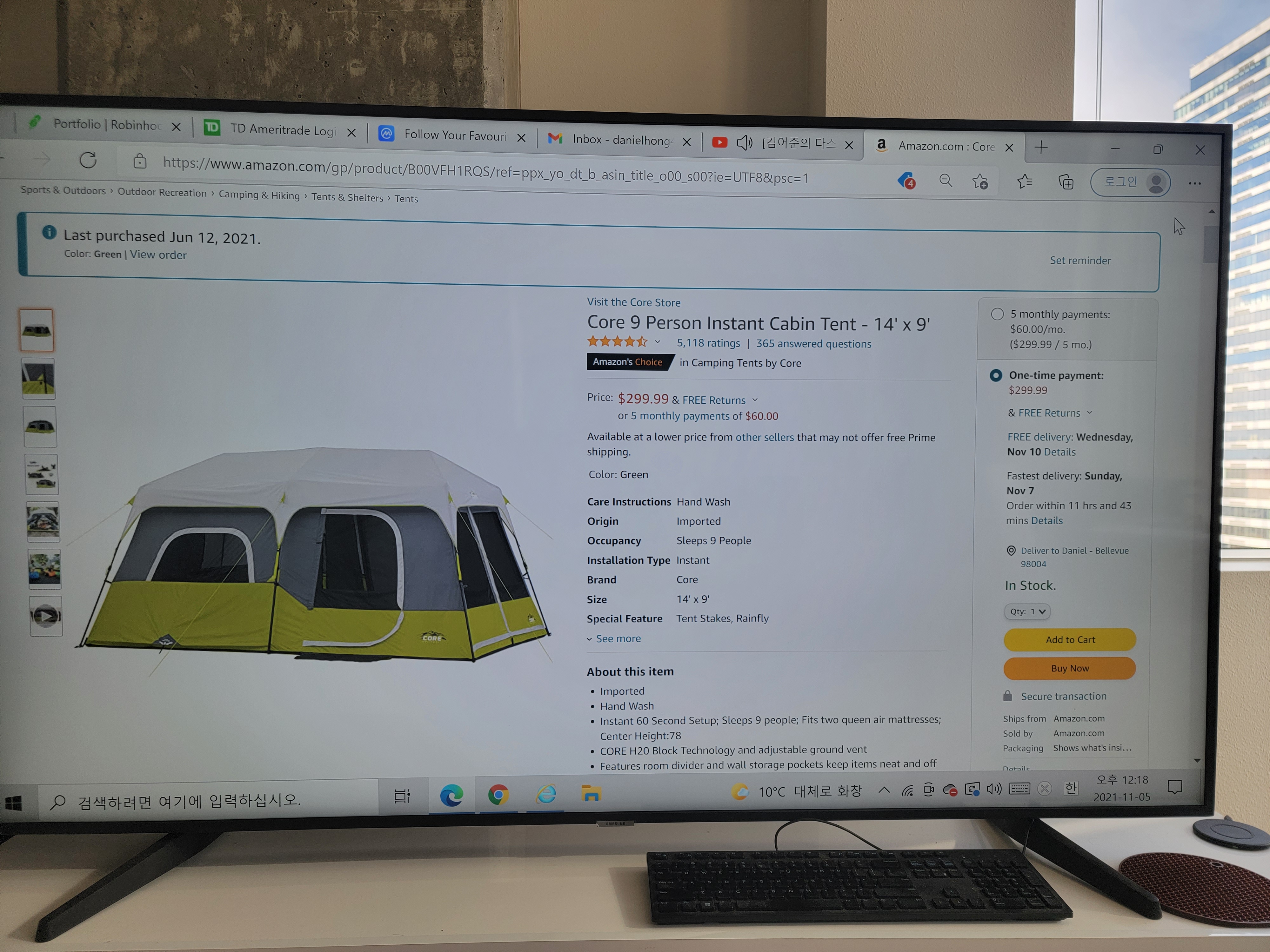 1, Core 9 person Instant Cabin Tent 14'x9': $200