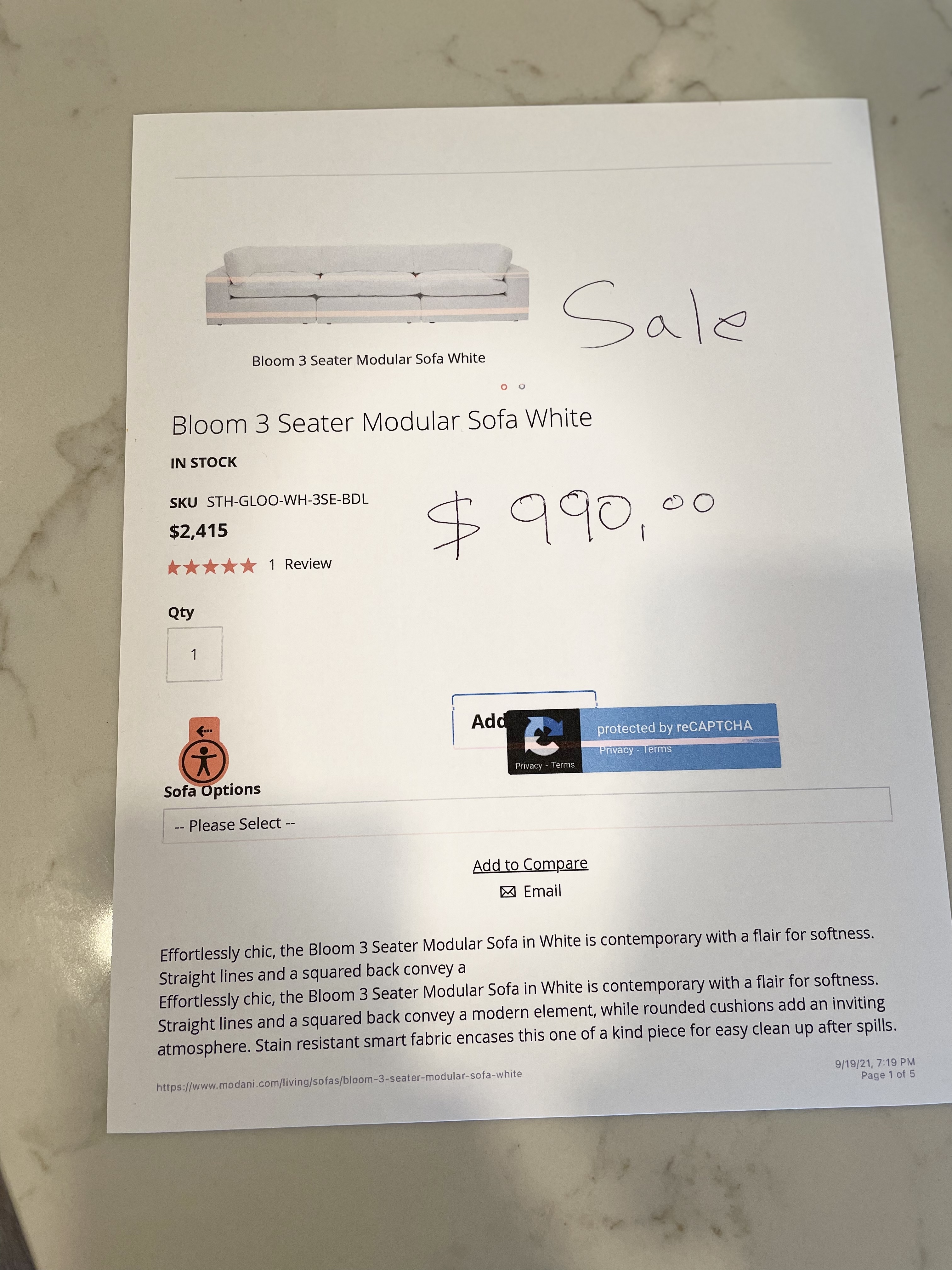Sofe & Edan Buffet.쇼파.흰색 다이 팝니다.