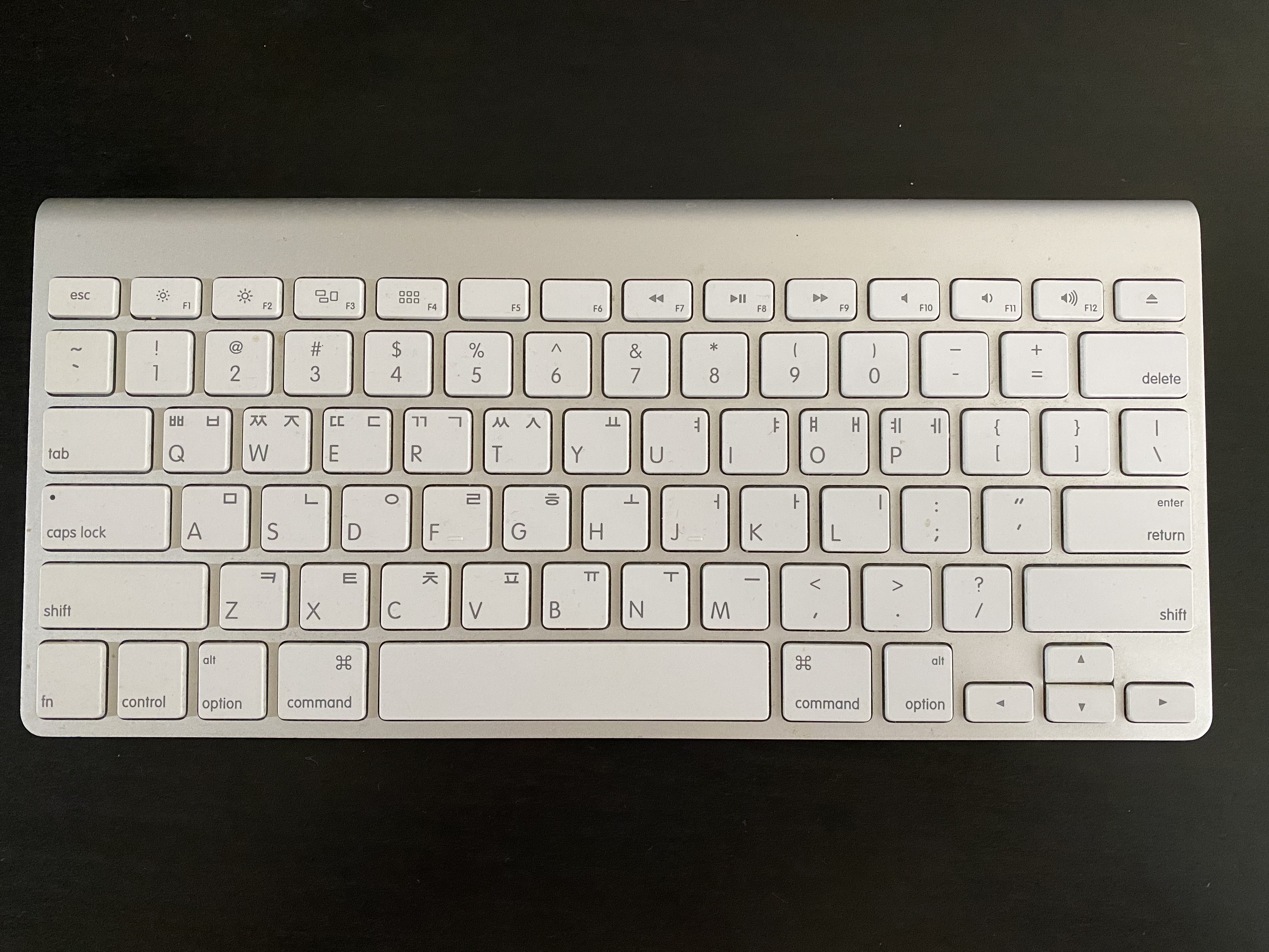 1세대 애플 매직키보드 (한글각인) 판매합니다. bolls 0 941 2021.09.04 01:31 외관 및 기능에 전혀 문제 없고 정상적으로 작동됩니다.1세대이기 때문에 AA건전지 2개 필요합니다.$30에 판매하며, 벨뷰에서 직거래 가능합니다.425-330-9952 문자연락 부탁드립니다!