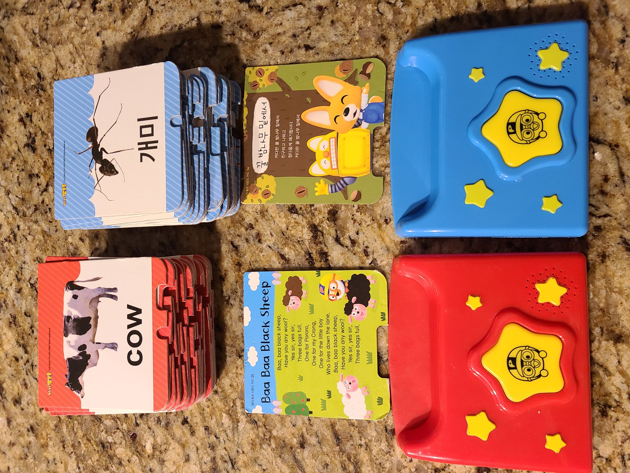 뽀로로 동요 사운드카드 팔아요 SeattleJoa 0 1422 2021.06.28 20:38 뽀로로동요 한글과 영어 사운드 카드에요한글은 24단어, 영어동요는 27장있습니다.앞면은 노래제목과 가사 적혀있구요 뒷면은 단어써있어요. 영어동요는 거의 새것같구요 한글동요는 몇개 사용감있어요두개에 15불. 머킬티오픽업206.582.9oo8