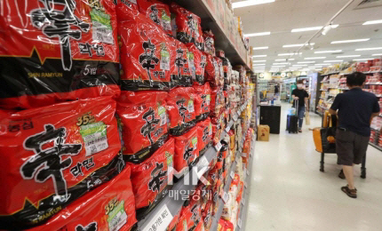 지난달 29일 서울의 한 대형마트에서 고객들이 라면을 구매하고 있다. [이승환 기자]