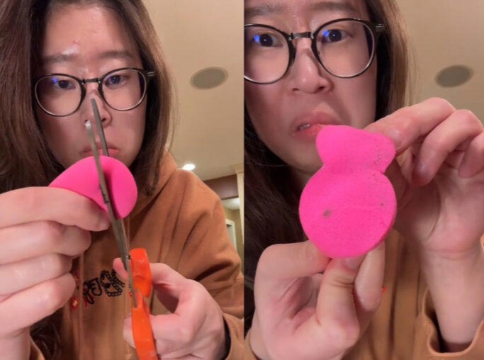 최근 미국 매체 뉴욕포스트에 따르면 라이프스타일 콘텐츠 제작자인 케이틀린 손(Kaitlyn Son)은 화장 시 쓰는 스펀지를 가위로 잘랐다. 두 개로 나눠진 스펀지의 안쪽 표면에는 검은 반점이 있었다.