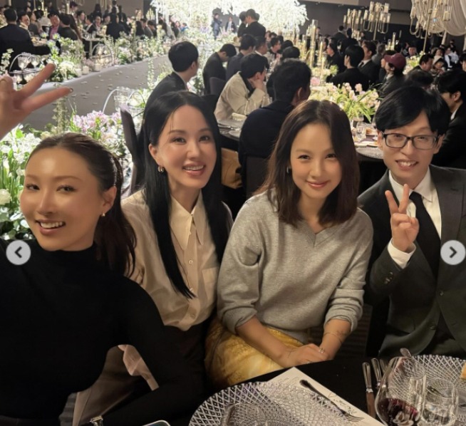 유재석과 이효리가 사석에서도 옆자리를 함께하며 찐남매 케미를 발산했다.