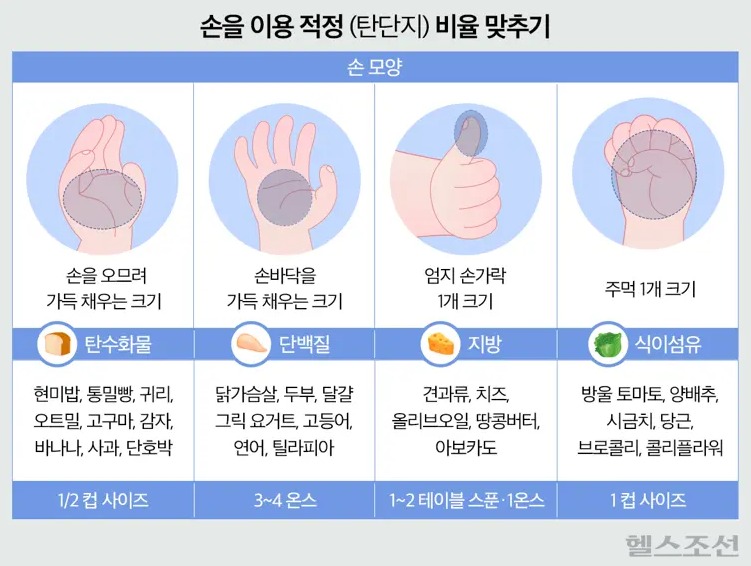 ‘탄·단·지’ 비율 따져 먹기 어렵나요? ‘손’ 활용하면 간단! / 김예경 기자©헬스조선