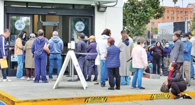 사회보장국 사무실 앞에 민원이들이 길게 줄을 늘어서 대기하고 있다. / <사진 박상혁 기자, 원문 황의경 기자>ⓒ 한국일보