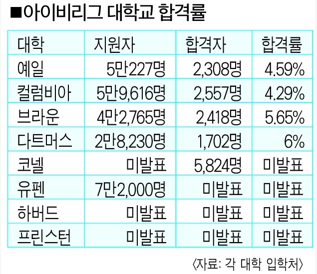한편 하버드대와 프린스턴, 코넬대 등은 정시전형 지원자에게 합격자 통보를 했지만 합격률 등 세부 통계는 공개하지 않았다.
