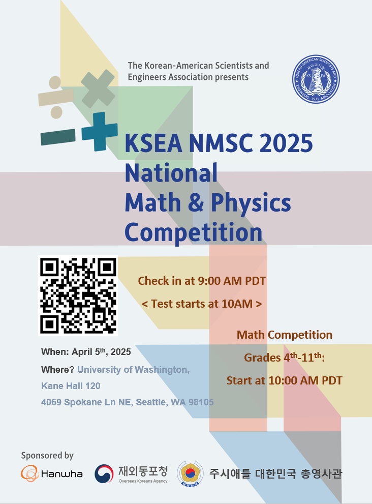 KSEA 시애틀지부 수학경시대회는 20년 이상 매년 열리고 있는 행사로, 시애틀의 테크 회사를 꿈꾸는 엔지니어와 과학자를 희망하는 학생들이 반드시 거쳐가는 과정으로 수많은 학생들이 평소 갈고 닦은 실력을 마음껏 겨루고 즐기는 축제의 장이다.