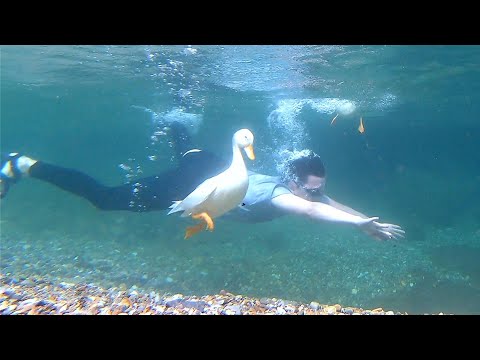너무 친해져서 사람따라 계곡에서 잠수하는 오리