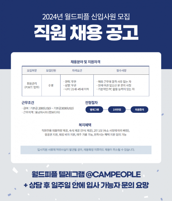 #해외# 2024년 월드피플 신입 직원 채용 공고