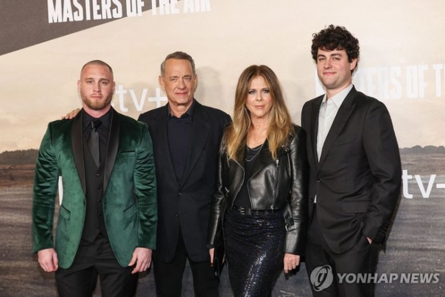 올해 1월 LA에서 열린 드라마 시사회에 참석한 톰 행크스 가족. 맨 왼쪽이 쳇 행크스. ⓒAFP 연합뉴스