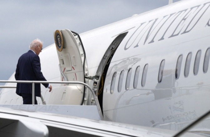 전용기 타는 바이든 조 바이든 미국 대통령이 대선 후보 첫 TV 토론 이틀 뒤인 29일(현지시간) 뉴욕주에서 열린