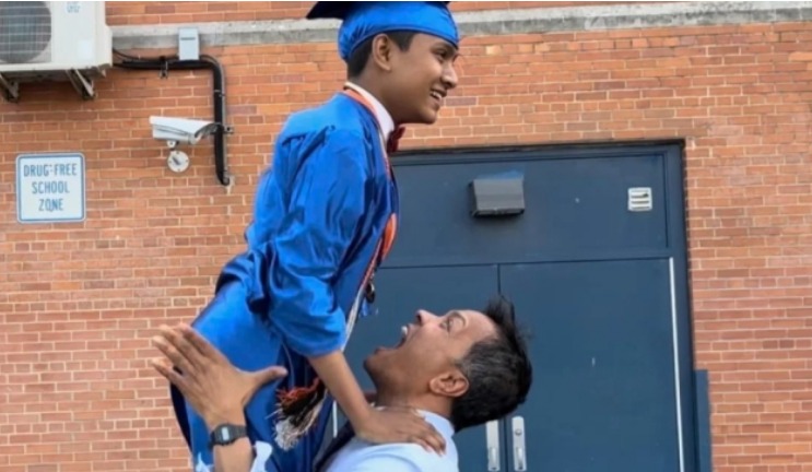 2024년 6월26일 고등학교 졸업식에서 수보르노 이삭 바리가 아버지와 함께 기뻐하고 있다. (CNN 갈무리)