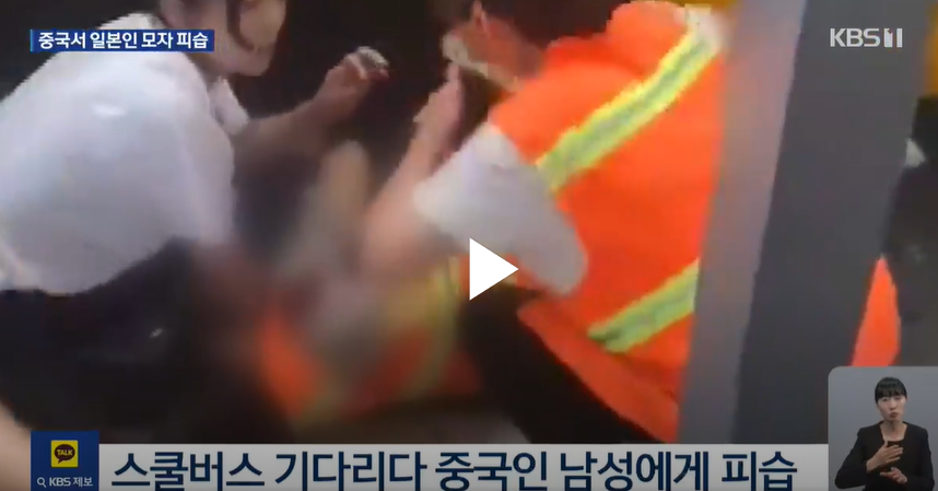어제 오후 스쿨버스를 타고 하교하던 자녀를 기다리던 일본인 어머니와 아들이 중국인 남성이 갑자기 휘두른 흉기에 다쳤습니다.