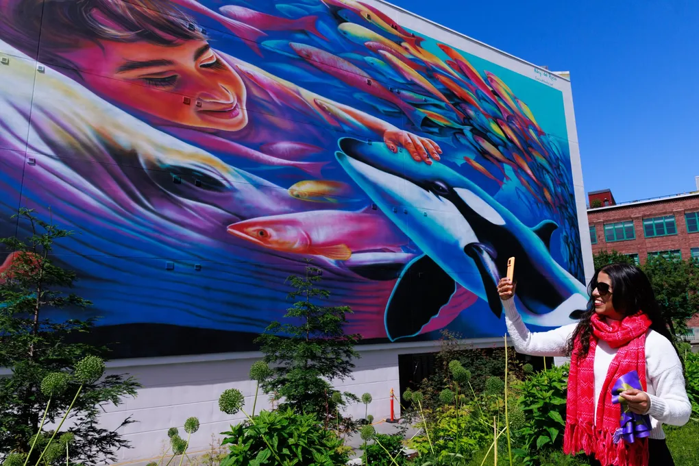 하나는 화가 빅터 애쉬가 그린 바다수리(시 호크), 해달, 바다표범의 3 연작으로 엘리엇 웨이 도로변에 펼쳐졌고, 애드리 델 로시오가 그린 다른 하나는 혹등고래와 범고래와 물고기 떼를 어우르는 소녀상으로 엘리엇과 웨스턴 길 사이의 벨 스트릿에 자리 잡았다.