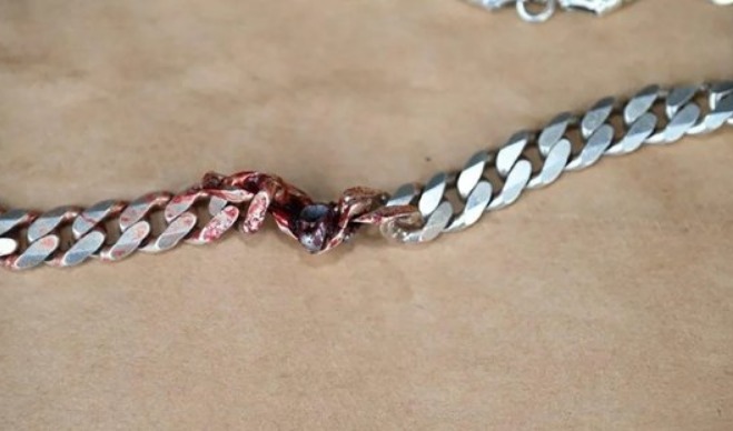 쓰러진 남성은 목에 상처를 입었지만 생명을 건졌다. 확인 결과 그가 착용하고 있던 10㎜ 폭의